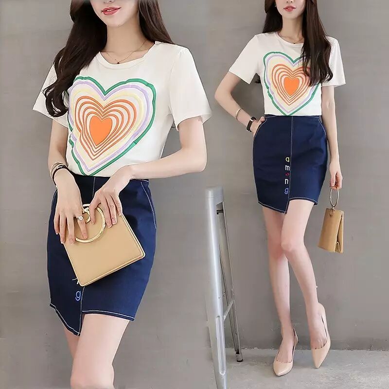 TOP24:圆领短袖印花小衫搭配修身包臀裙,青春洋溢着活力,仿佛回归到学校,整套减龄的效果不言而喻。