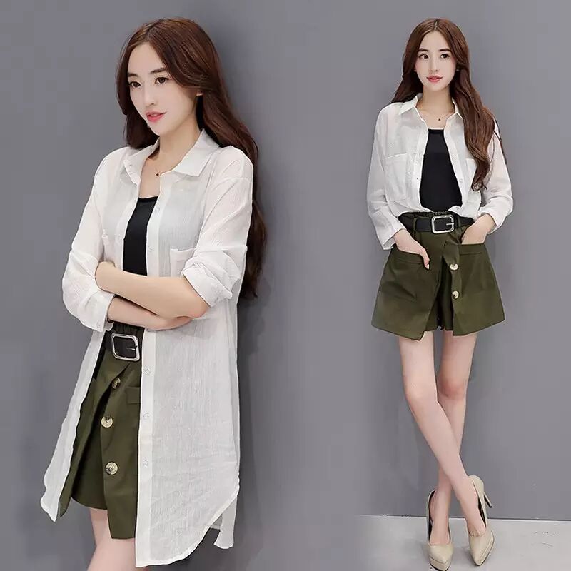 TOP7:透气简约长袖中腰POLO领套装,三件套还搭配吊带,秋季的时尚韩版造型,休闲随性,军绿色个性短裤更是为时髦加分。
