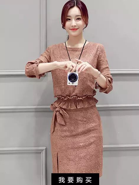 TOP2:甜美圆领长袖修身显瘦两件套,优质的版型,高档的面料,摸上去就不一般,见了客户的反馈和评价,穿着让人眼前一亮。