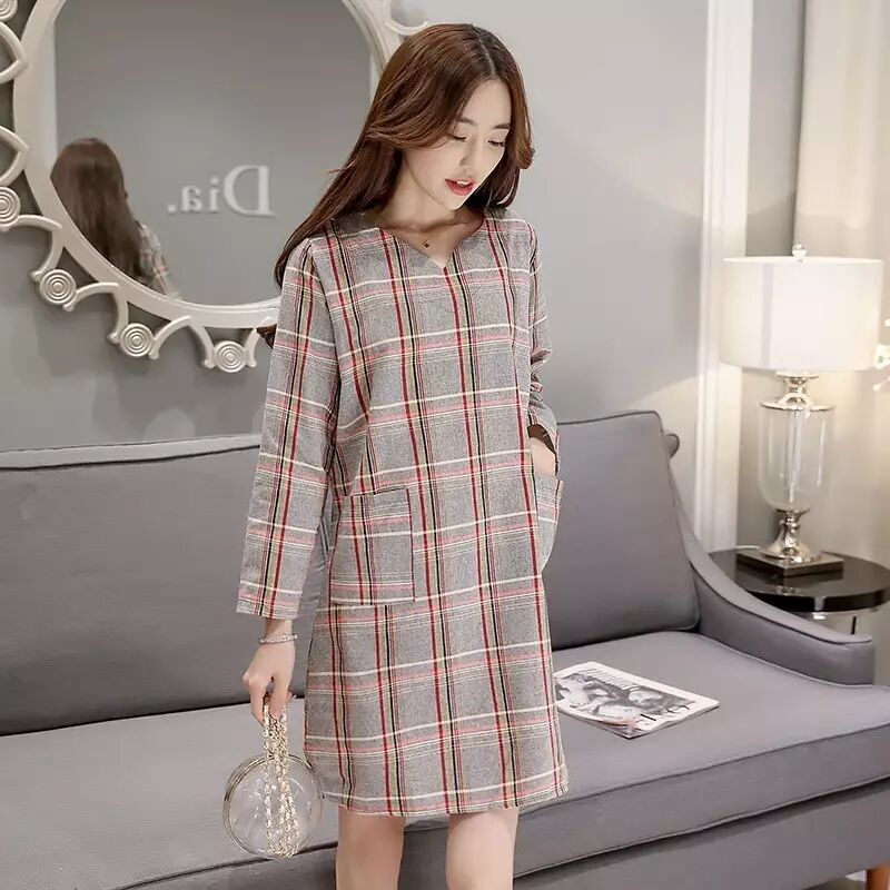 TOP19:韩版宽松显瘦百搭格子中长款修身连衣裙,H型版型适合各种身材的MM,经典潮流的格子非常的文艺淑女。