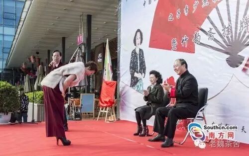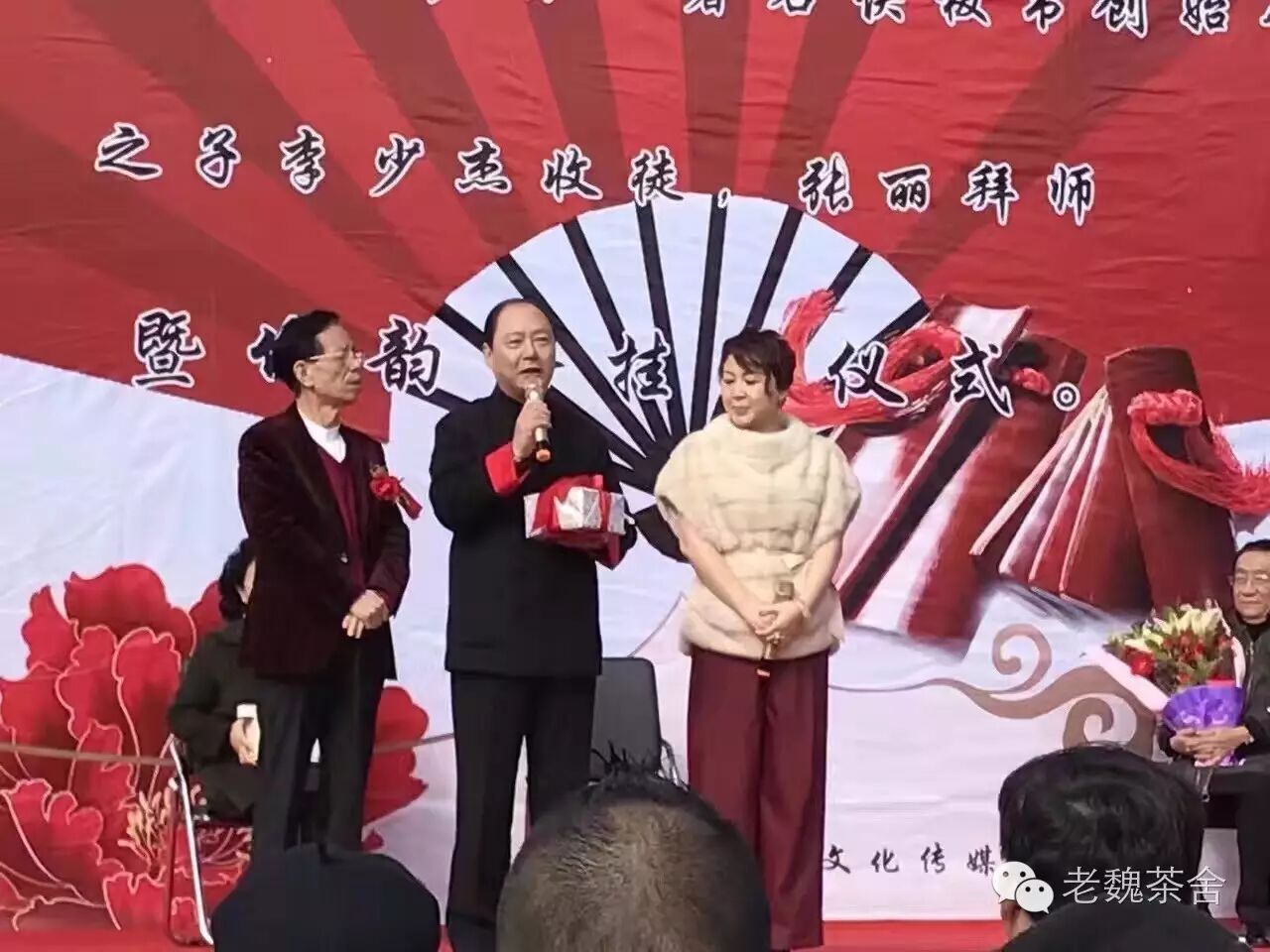 作为张丽拜师的引荐人,侯耀华(左)在现场表示,张丽能真正学到本领,并且承担起竹韵斋华南分部“舵主”的责任,让这里成为一个普通话和广东话沟通交流的平台,促进曲艺事业的南北融合发展。