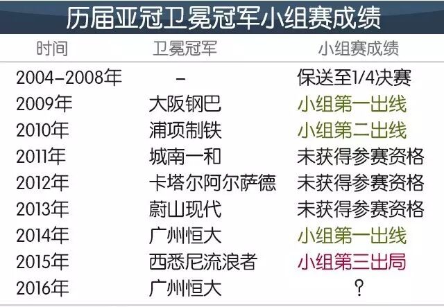不过,从2004年到2008年亚冠卫冕冠军保送进入1/4决赛,2010年冠军城南一和、2011年冠军卡塔尔萨德、2012年冠军蔚山现代均未从国内联赛获得亚冠资格,卫冕冠军打小组赛只发生过5次,若是死亡率达到40%,着实有些高。