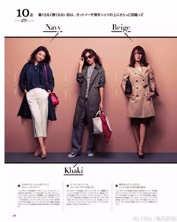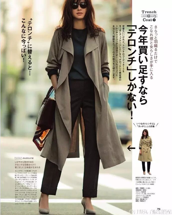 日系各大杂志上,每年秋天都会出很多关于风衣与牛仔裤的搭配LOOK.