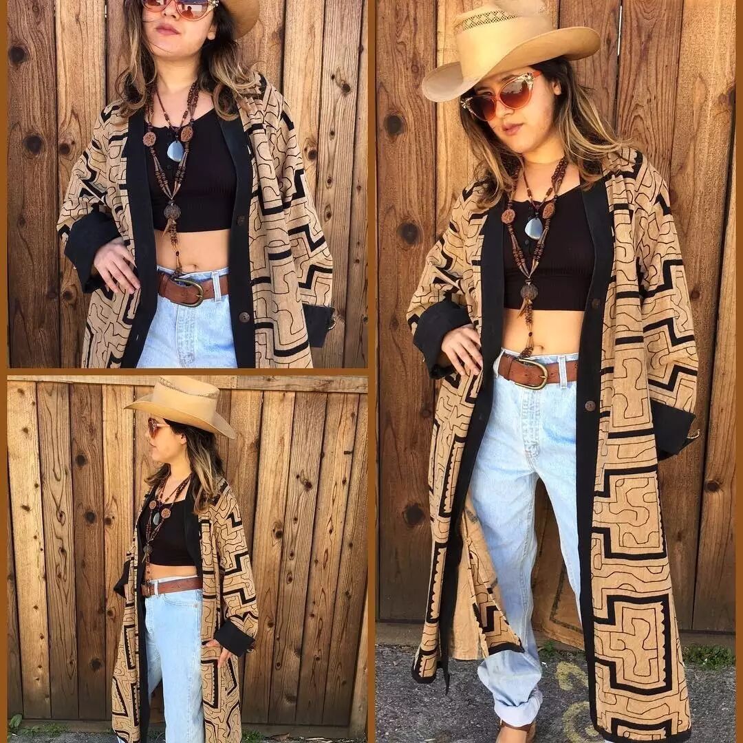 风衣除了与紧身牛仔裤之间默契度极高之外,其实搭配阔腿牛仔与大A字高腰牛仔半裙,也是非常有品位与型格哒。