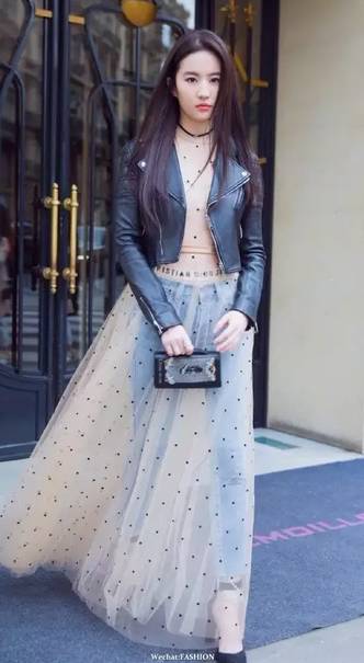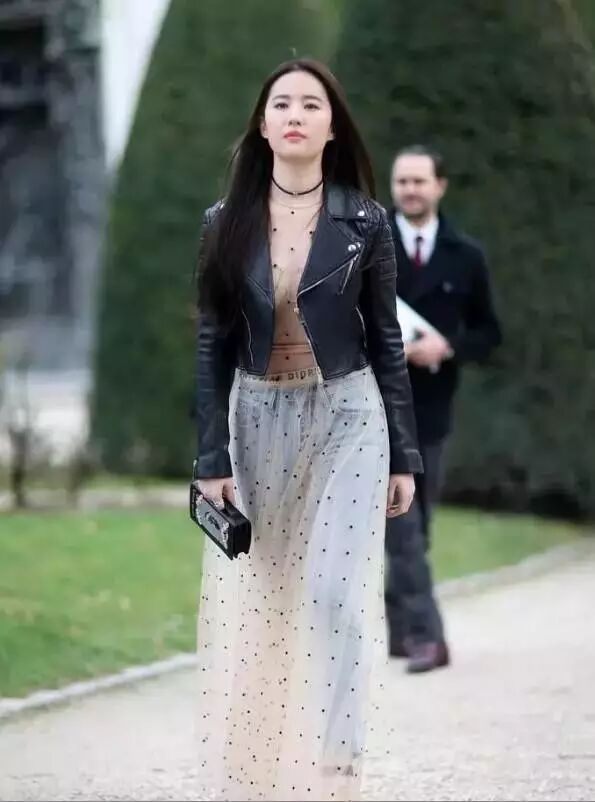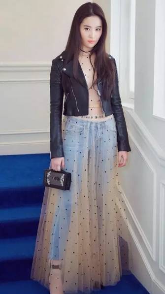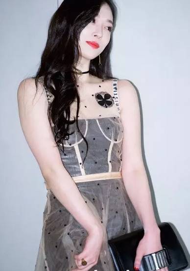 她在透视裙里面搭了条黑色皮裙...给人的感觉就从“仙气飘飘”变成了“性感撩人”。
