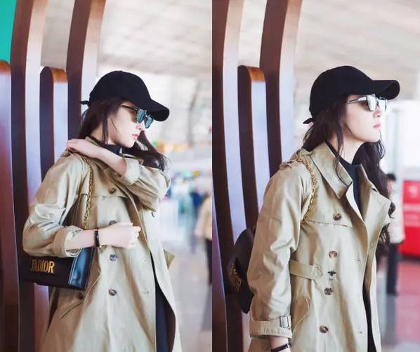 宋茜现身首都机场,身穿军绿色风衣+黑裤黑鞋+黑色棒球帽,帅气风来了~