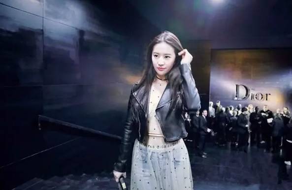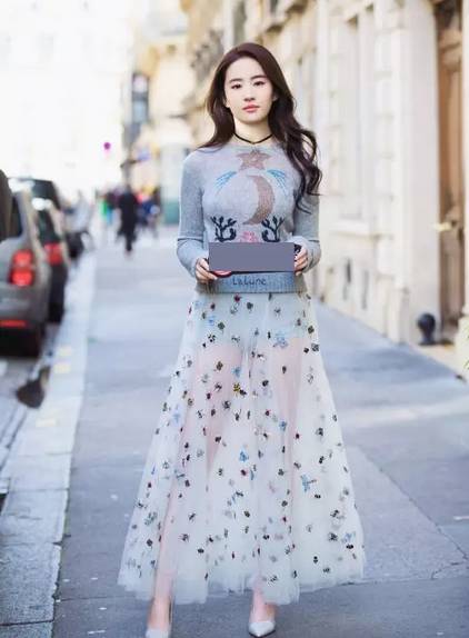 因为刘亦菲是受邀参加Dior的时装秀,所以她在正式看秀的时候穿的还是这个牌子的仙女裙。