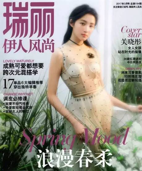 关晓彤给某杂志拍摄了三月刊的大片,在杂志的双封面里,她都选择了仙女裙。