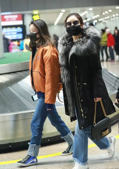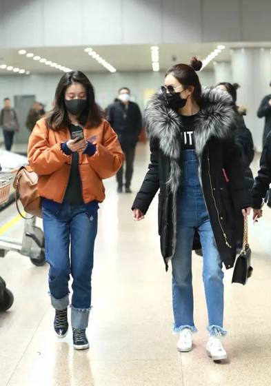 赵丽颖和张雪迎同时现身北京机场,赵丽颖穿背带牛仔秒变少女