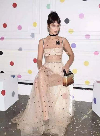 Bella Hadid以裸色纱裙造型出席Dior “The Art of Color”活动,柔美中带着酷劲,好身材一览无遗。