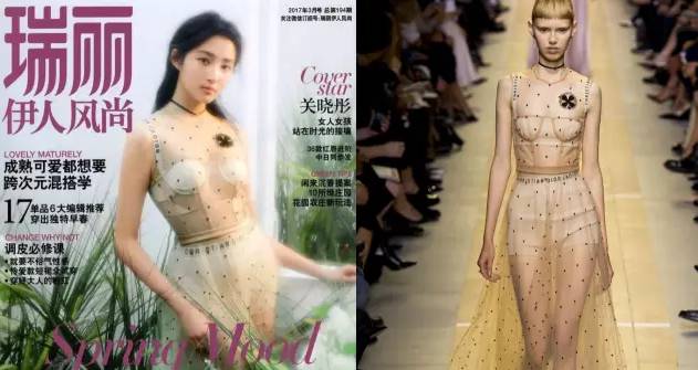 国民闺女关晓彤倒是完全还原了裙子的本来穿法,但总觉得这么性感的风格在她身上有股浓浓的违和感。