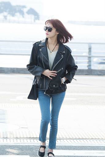 李圣经的这一身机场look,oversize款的机车夹克太衬气质了。