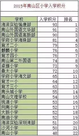 (1)南山区2015年小学入学积分表