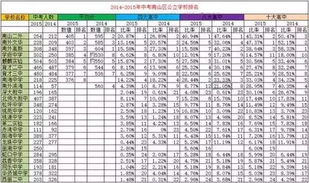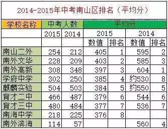 (2)南山区14年和15年中考成绩总表