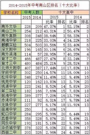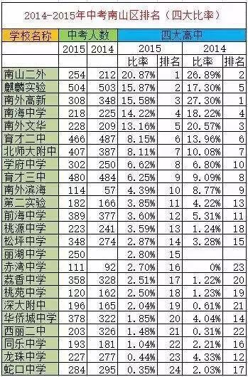 坊间流传着这样一种说法,南山区和福田区相比,虽然四大(实验、深高、深中、深外)录取比率福田比南山高,但是南山生源后劲明显是南山更强一些。