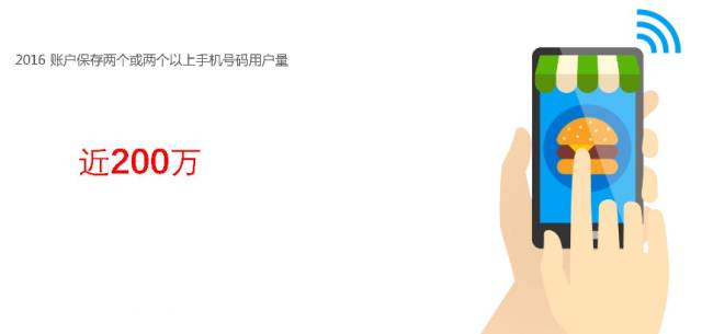 :为爱的人点外卖。以“饿了么”为例,在注册用户中,约有200万消费者的常用号码多于两个,“吃了吗”变成真正可行动的问候。
