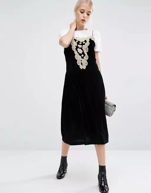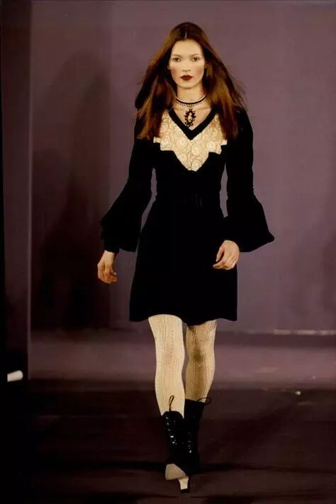 90年代的Anna Sui用的是天鹅绒搭配蕾丝的设计,这条裙子的款式放到现在稍微修改一下,也还是可以成为最新款啊。