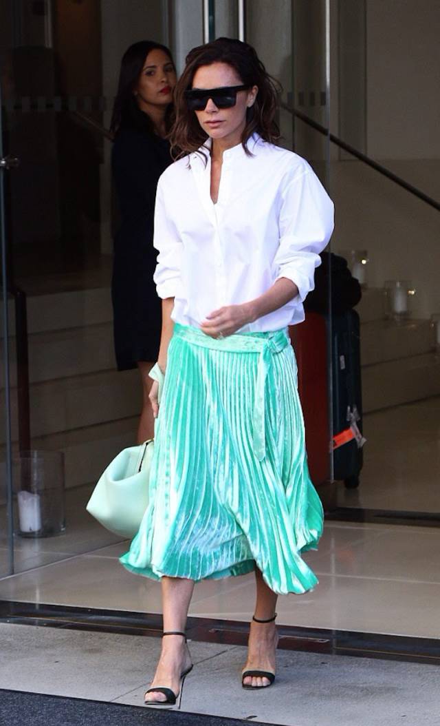 首先当然是我们的贝嫂,能搞定男神的女人绝对不简单啊。一个连自己的品牌都要出天鹅绒单品的设计师,当然自己也是喜欢的不得了。但是贝嫂就用白衬衫简单搭配了一条天鹅绒迷笛裙,我有点意外她会选薄荷绿这个颜色,但是