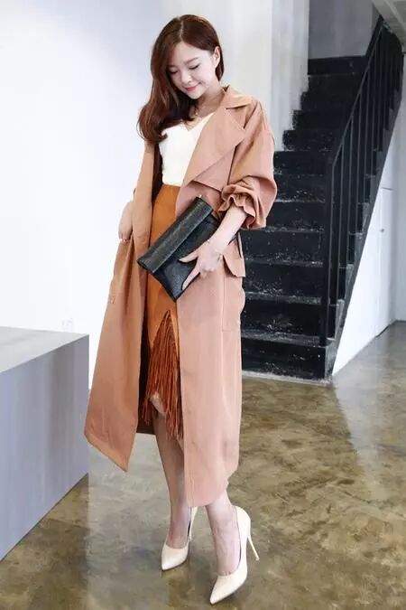 秋日超实穿的中长款风衣外套,绑带修身收腰版型,很气质很显瘦,内搭件气质中长款白衬衫,日常通勤出街都很赞,时尚韩范。