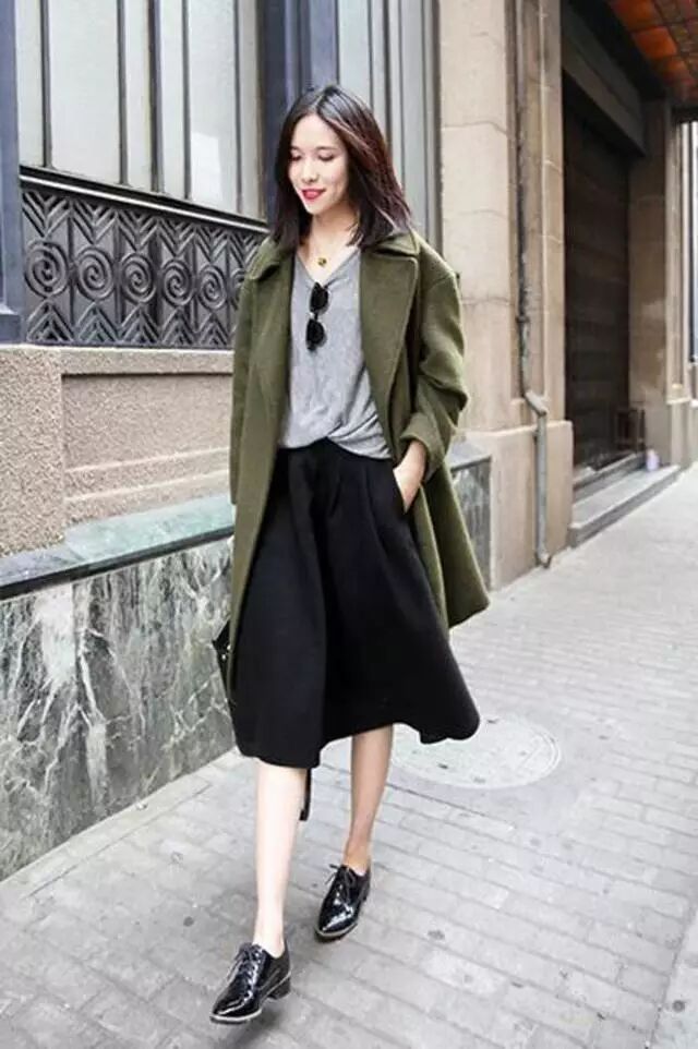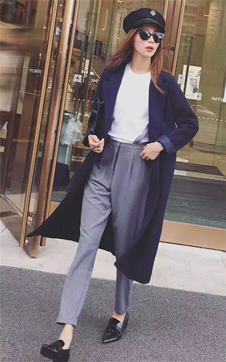 灰色大衣搭配黑色内搭,乐福鞋是今年大热,舒适又百搭。