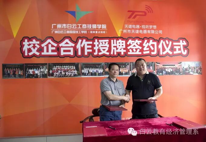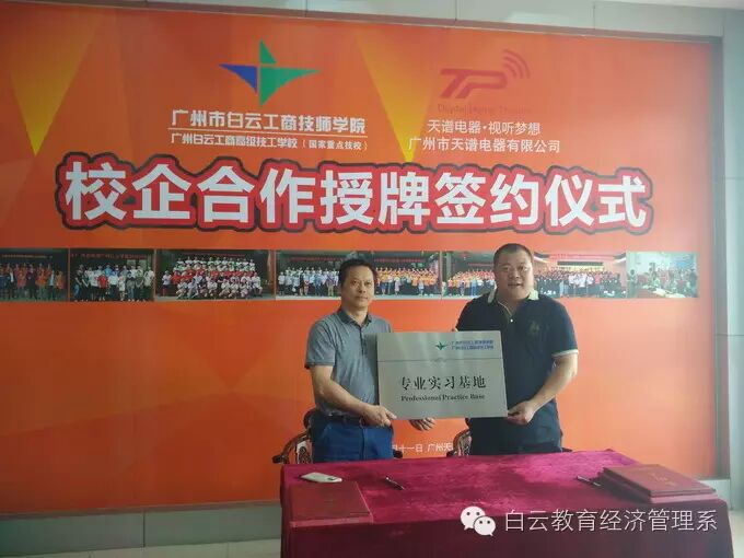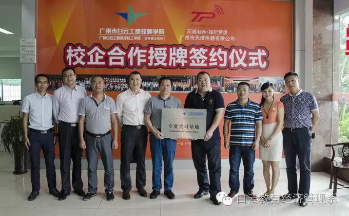 广州市白云工商技师学院与广州天谱电器有限公司在今后、双方将持续全面、深入地探索校企合作新模式,开启校企共育技能精英的新篇章。在校企双方众多领导的共同见证下,广州天谱电器有限公司与广州市白云工商技师学院签订了多项合作内容,并授牌建立了“专业实习基地”、“三导师教学基地”、“参观见习基地”。