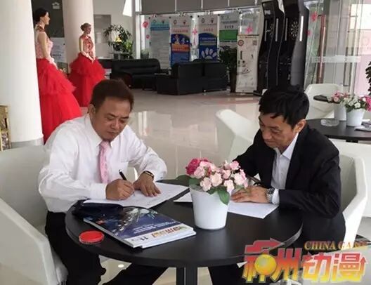 GTI/浩基有限公司总经理张宏玮(左)和广东游戏游艺文化产业城总经理欧阳安(右)