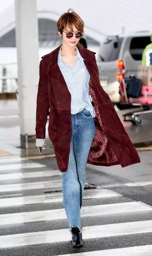 内搭牛仔或者是同色系的裤子最为经典不会出错,
