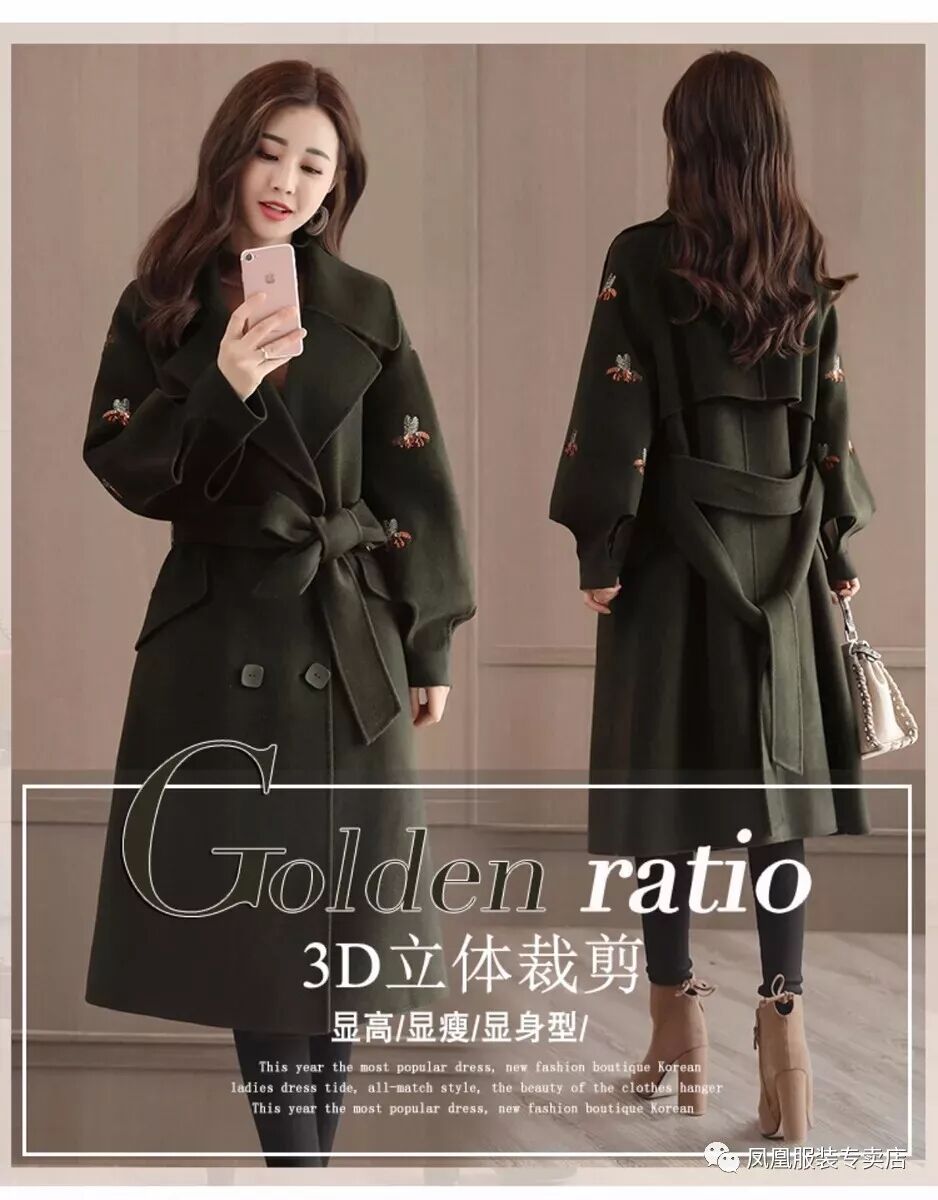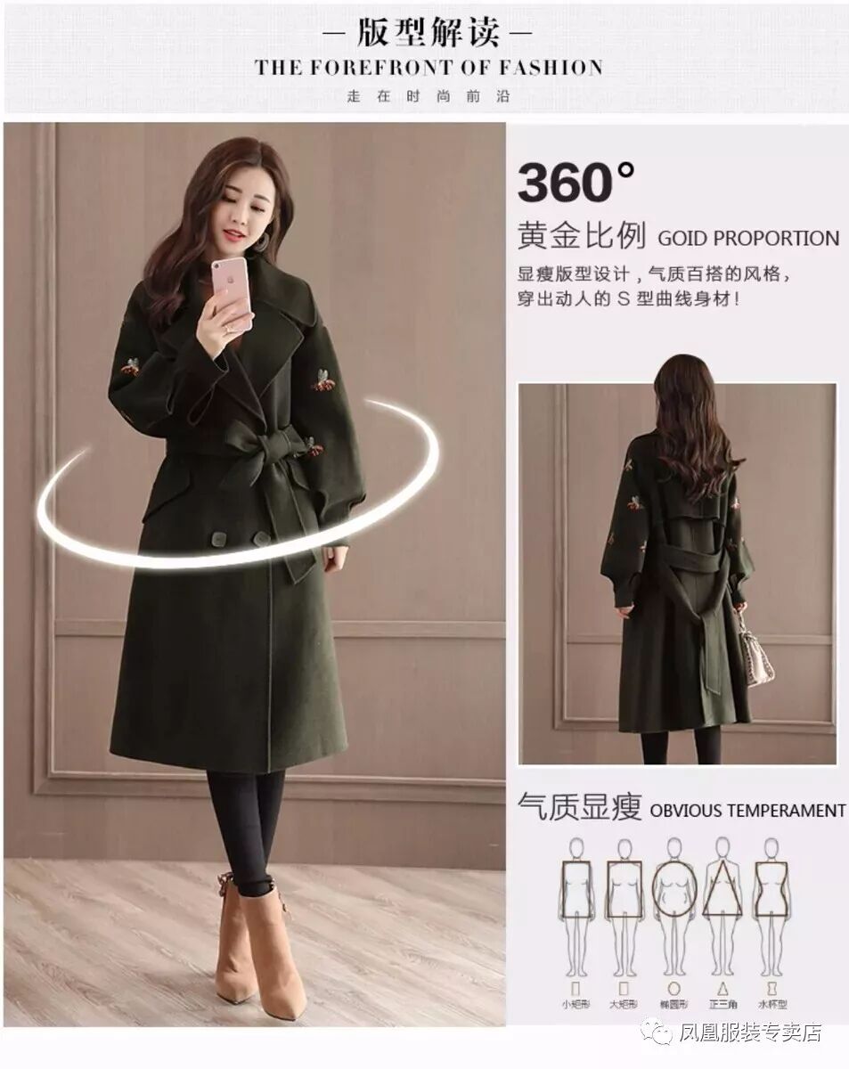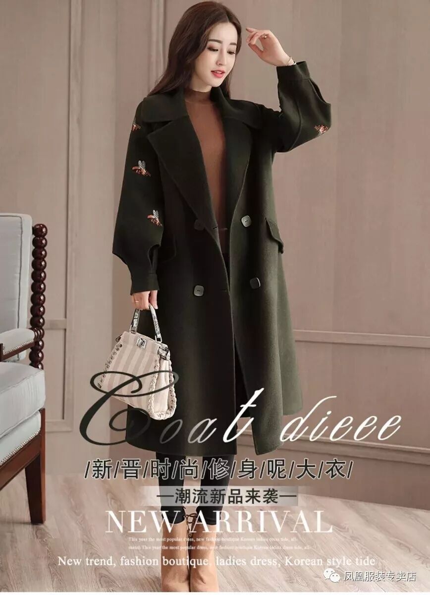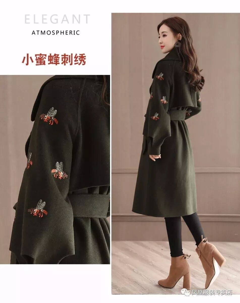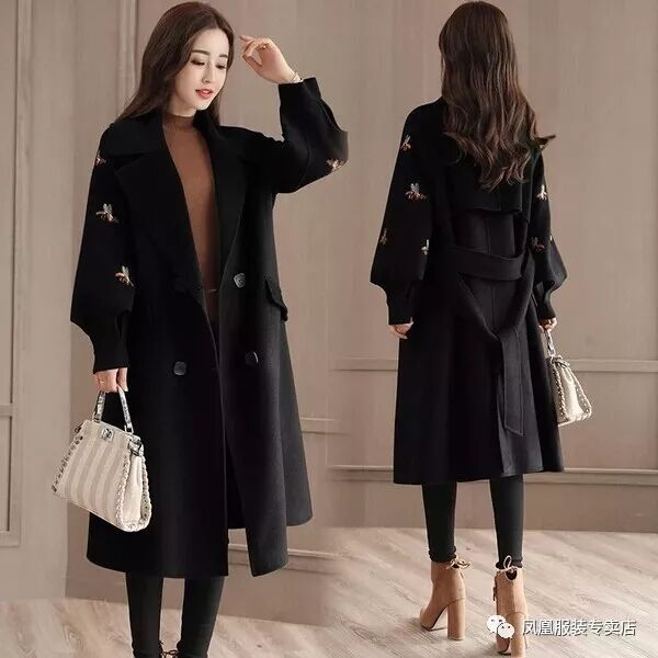 【凤凰服装】新款毛呢外套女中长款韩版时尚女装秋冬款妮子大衣潮风衣推荐