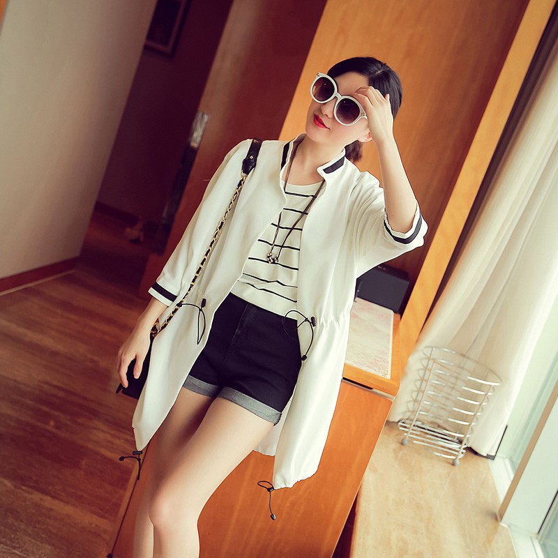 ¥ 53.00【艾佳依】2015春季新款女韩版中长款立领收腰蝙蝠袖雪纺风衣外套 011511200207两色入
