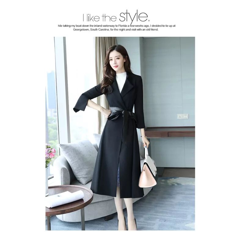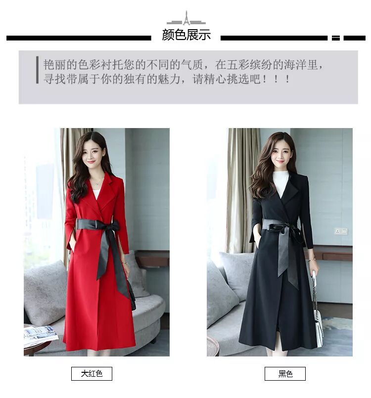 20917年秋季新款女装韩版时尚气质中长款长袖修身百搭风衣外套潮