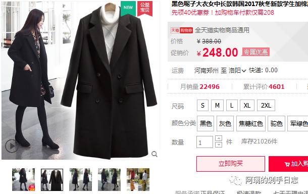 黑色呢子大衣女中长款学生加棉加厚毛呢外套