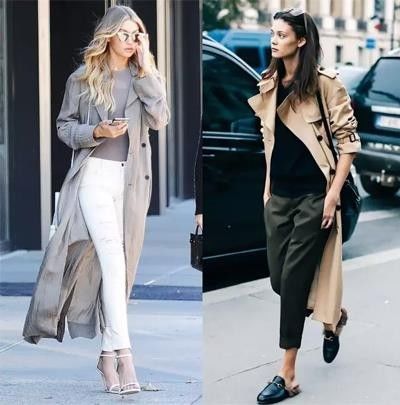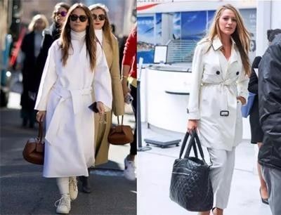黑色经典显瘦,白色减龄时髦,正如 Coco Chanel小姐曾说过,“黑白两色美得百搭不厌、无懈可击!”如果想投资一款穿上十年也不过时的风衣,那就选黑白两色吧!
