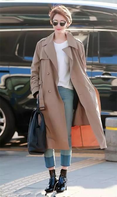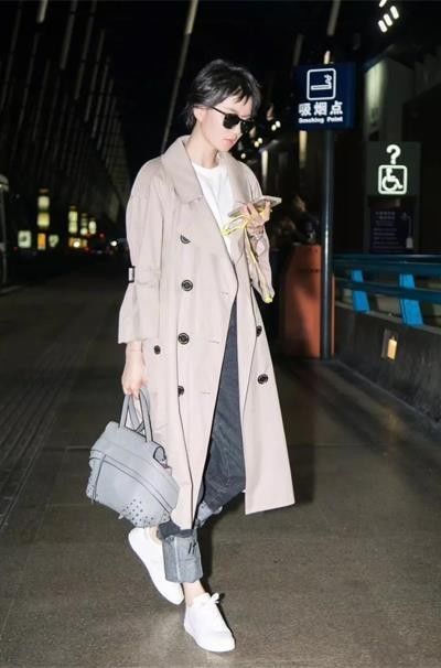 给你们看看刘诗诗最近的一组街拍浅卡其风衣内搭白色T恤和牛仔裤,简单大方。
