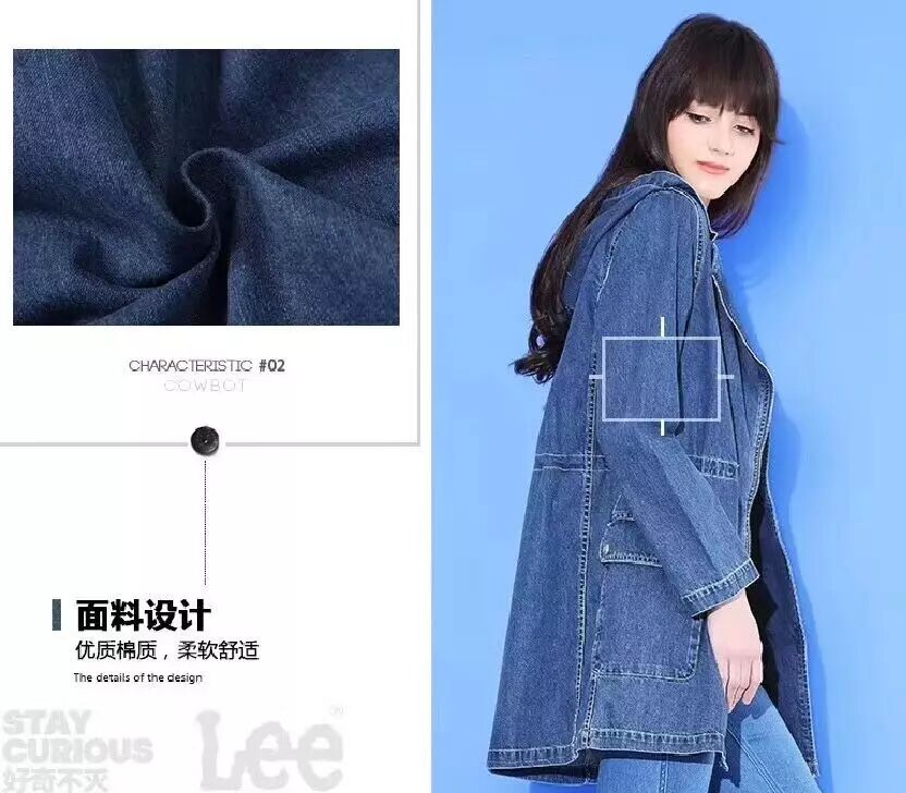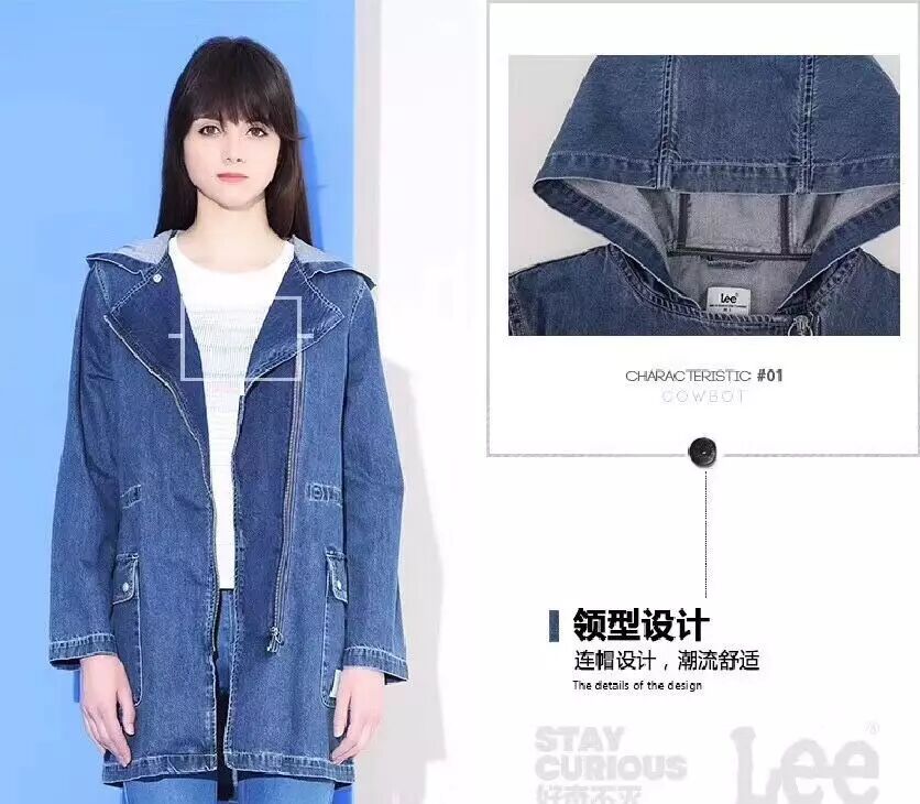 【Lee超帅气的牛仔风衣外套!吊牌价1090!】 专柜热卖中,绝对物超所值经典的牛仔蓝丹宁色,相比那些传统不变的、板板正正的、已经被设计好穿搭路线的经典款风衣,我们需要这样一件牛仔风衣来打破常规!厚薄适中的牛仔布料,大大的帽子也多了份休闲慵懒,正适合秋季穿着