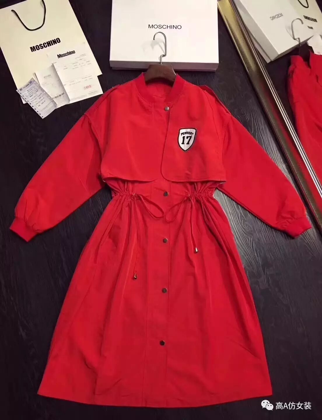 MOSCHIO海外专柜同款高端定制 潮范十足的17字母印花休闲中长款棒球服风衣外套推荐 源用进口面料打造 防水抗污性强 打理非常方便 腰部抽带束腰 穿着超个性有型 尽显欧美街头风范 两色入 面料 100%进口聚酯纤维 码数 S-M-L-XL码【S码 溜肩款 胸围122 腰围108 衣长106 袖长59 其他码数胸围 腰围各自加减3-4cm】