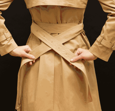 收腰的风衣,一般就是腰上会有一根腰带,系上就会显得特别纤细,还有一种,是立体裁剪的,很多个衣片,把腰部凸显出来,当然这两种都比较显瘦,但是会比较刻板。