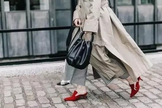 但是大家在穿中长款风衣的时候,一定不要穿超大的阔腿裤或是百褶群去搭配,那样一定会把自己穿成一个水桶,找不到腰也找不到腿。