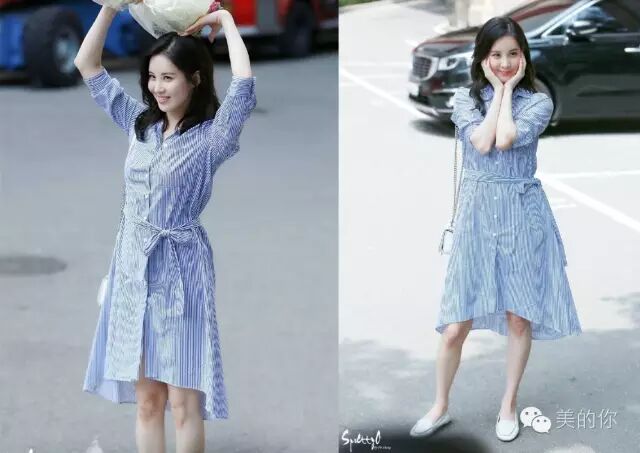徐贤最近穿的这条蓝色条纹衬衫裙