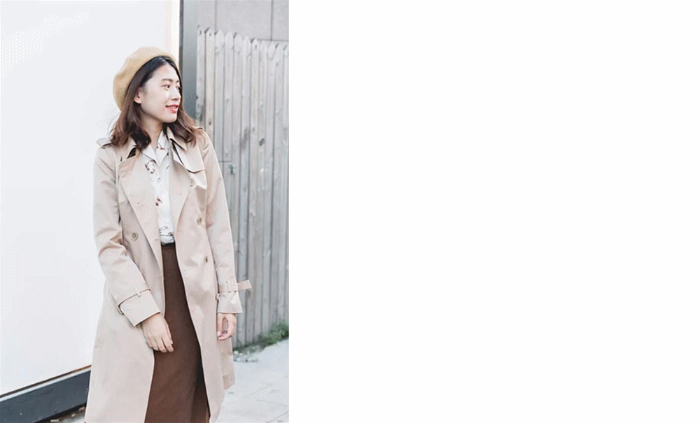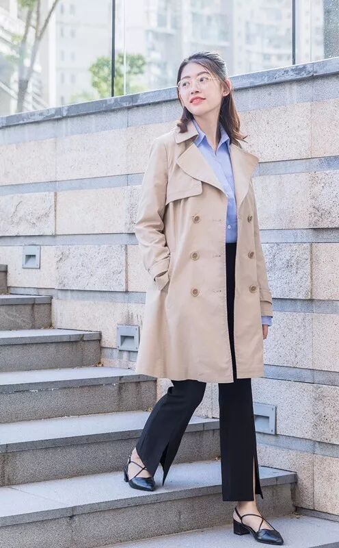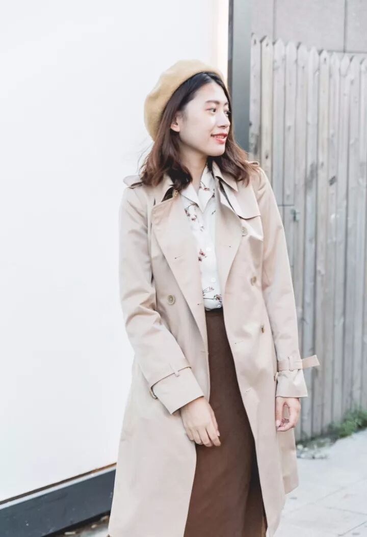 明亮米色:如果觉得卡其有点成熟,大家还可以选择米色,米色的风衣更明亮一些,容易显肤白。