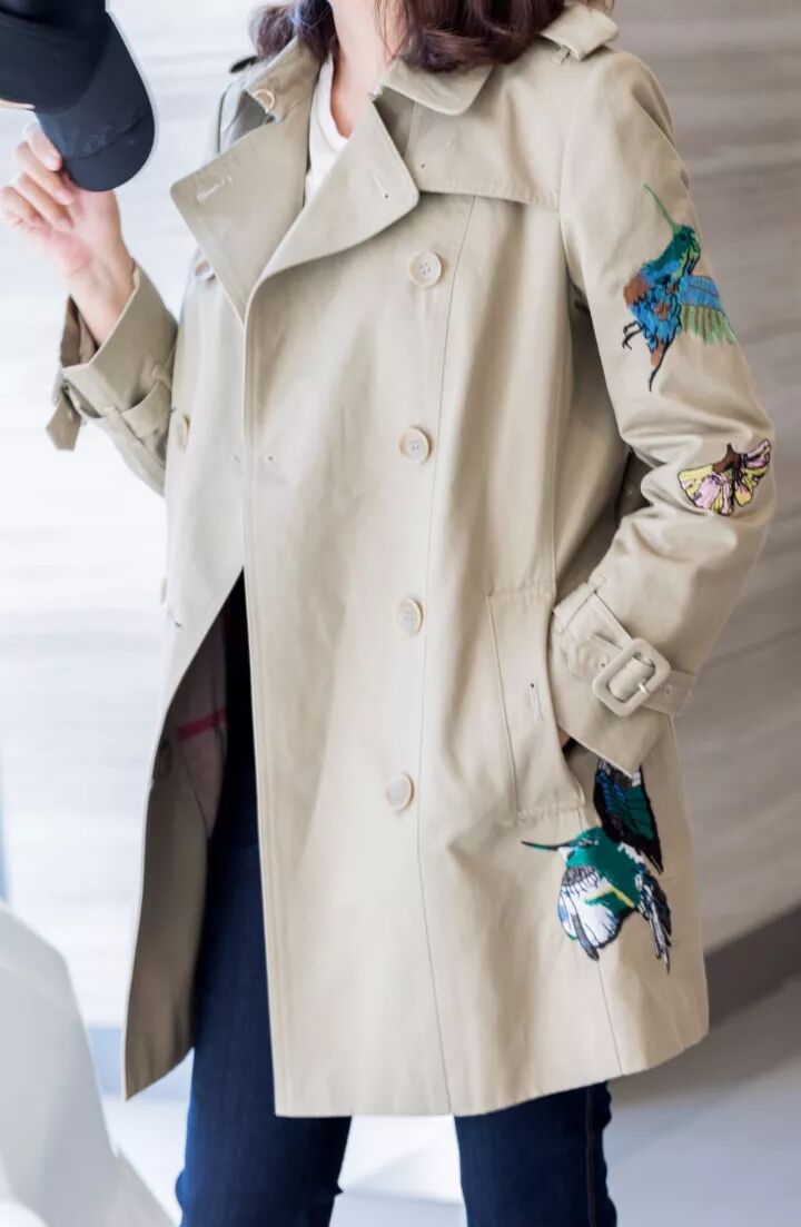 当刺绣遇上酷酷的风衣,也能碰撞出不一样的火花。风衣材料的质感厚实笔挺,更能突出刺绣图案的立体感。
