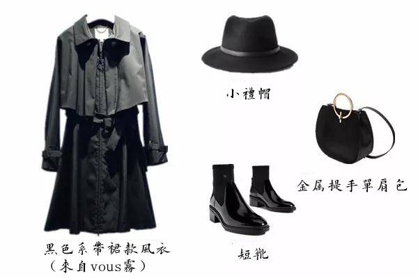 一条腰带风衣变裙子,不用操心要什么内搭,黑色的风衣更是简单,一身全黑的搭配就是安全的选择,搭个小礼包和手提包更是优雅~