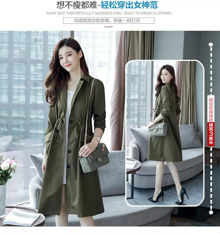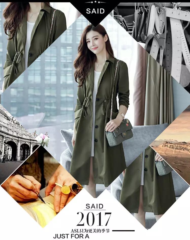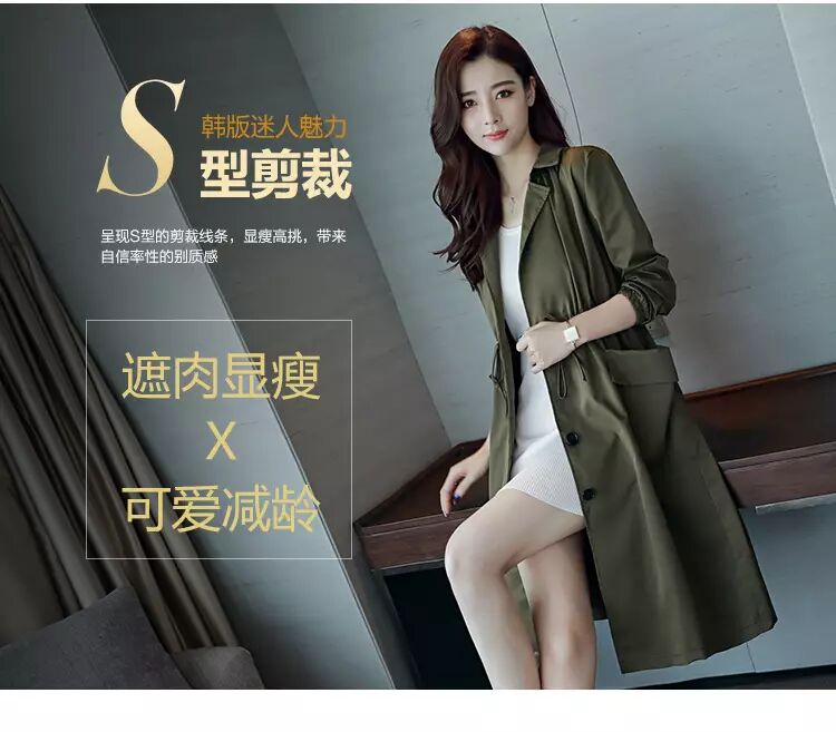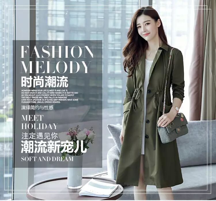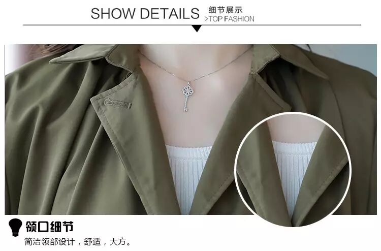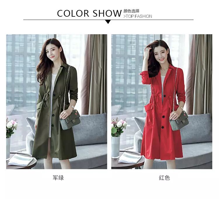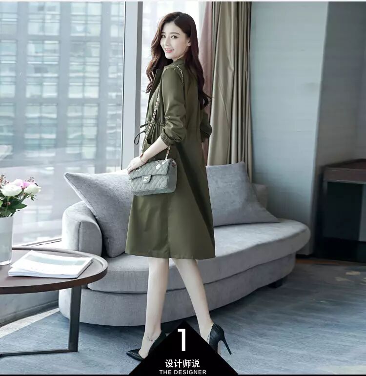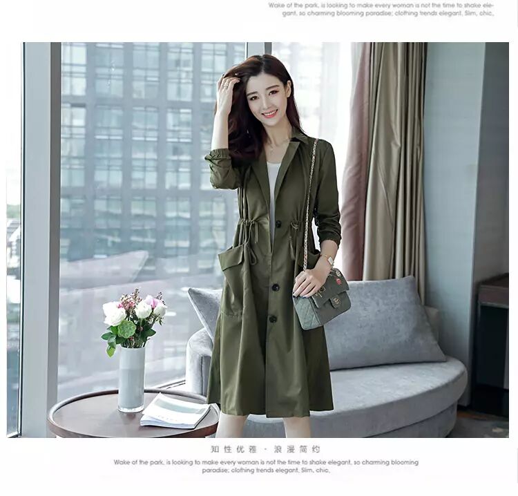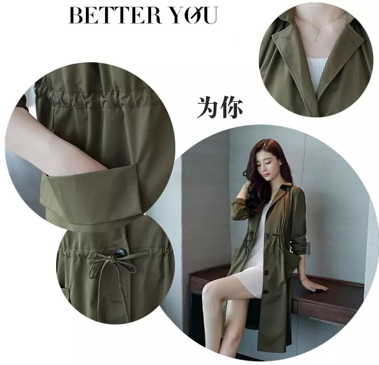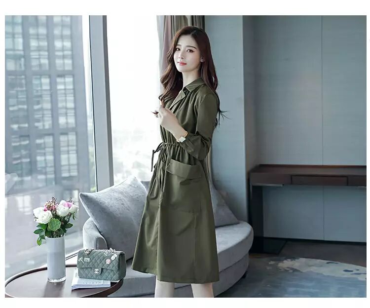 秋季纯色中长款时尚个性百搭POLO领口袋单排扣风衣