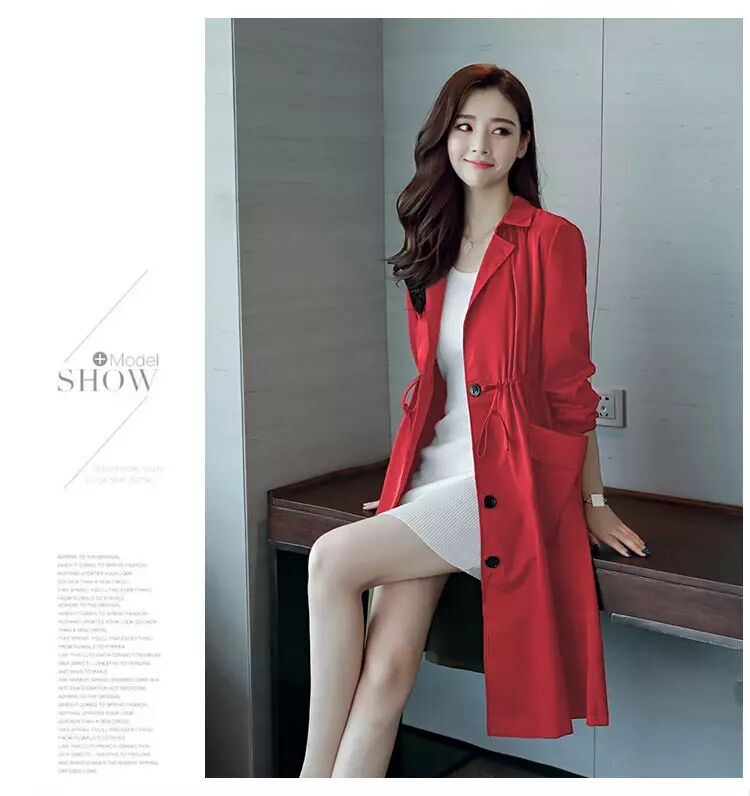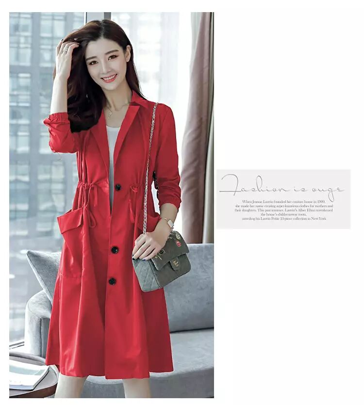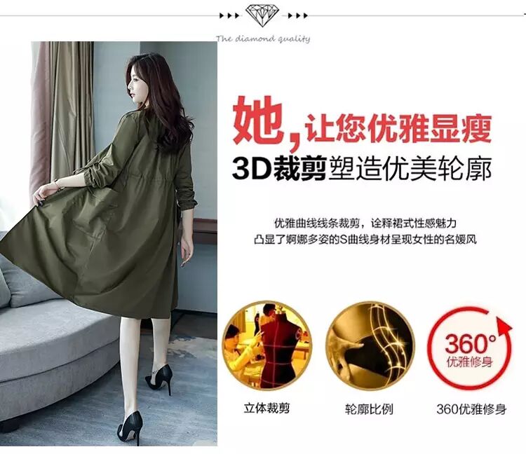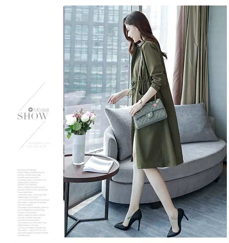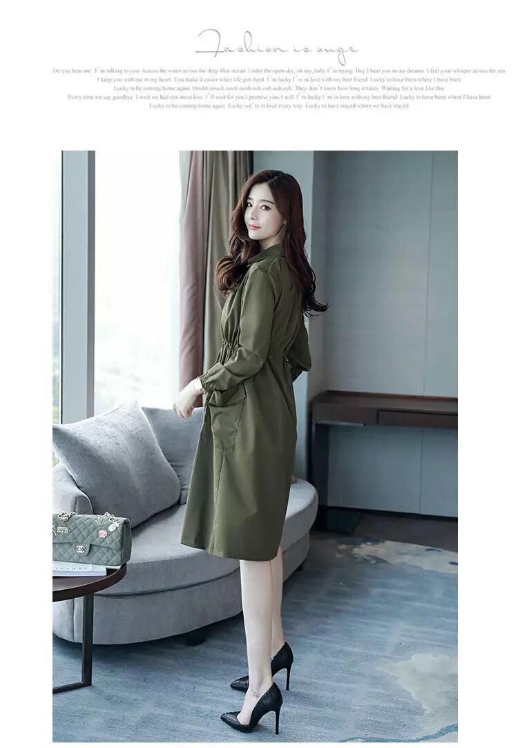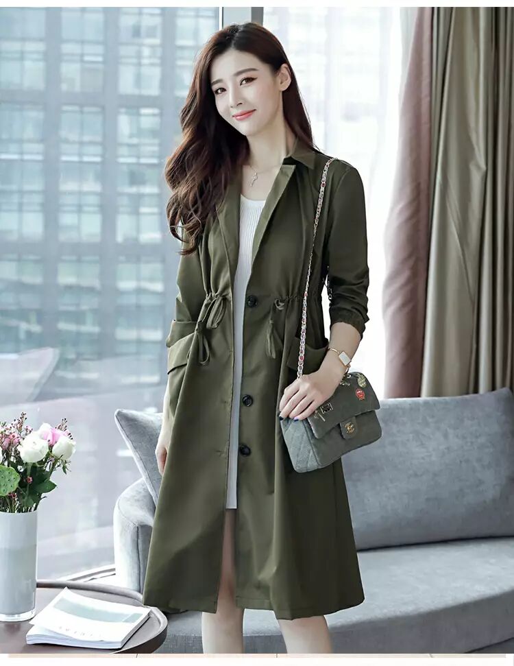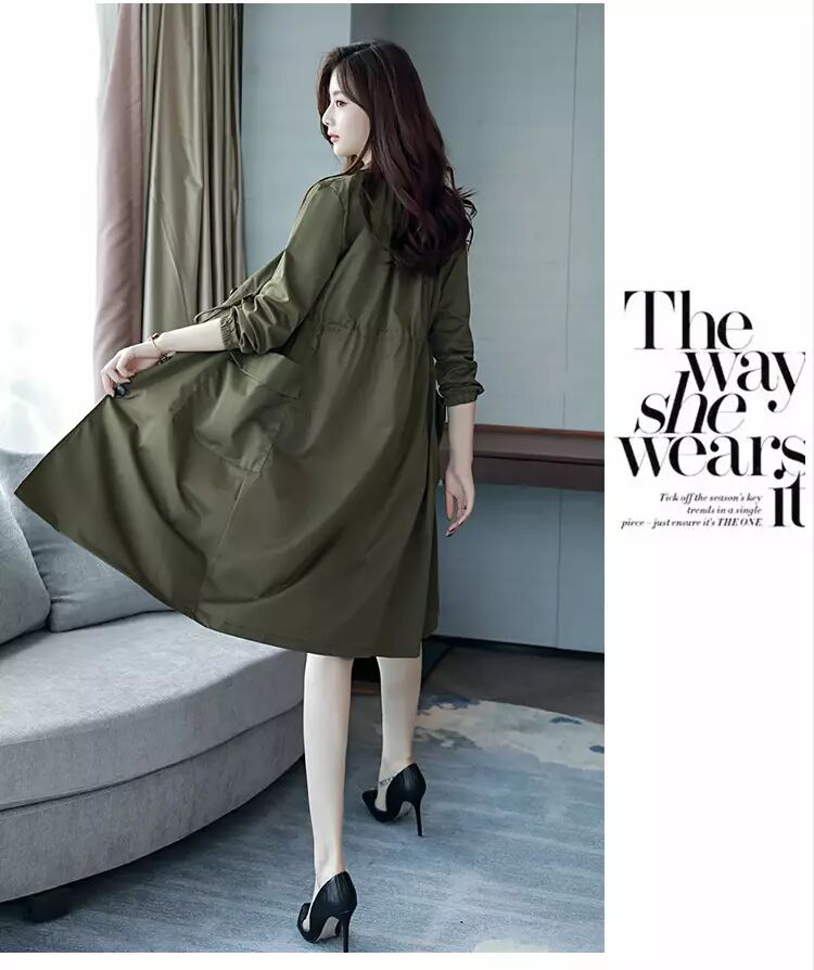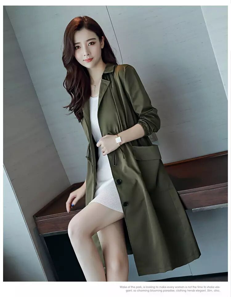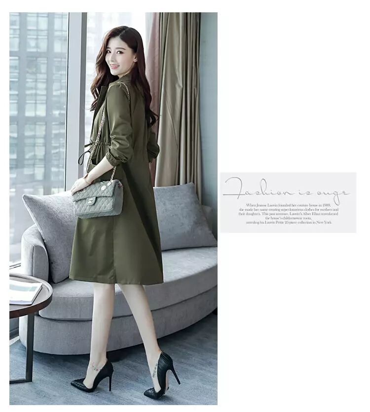 秋季纯色中长款时尚个性百搭POLO领口袋单排扣风衣