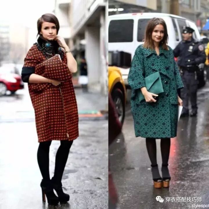 但是胖妹和哈比人穿最好把大衣敞开穿,而且要想显高又不土气,选择膝盖周围左右准没错。