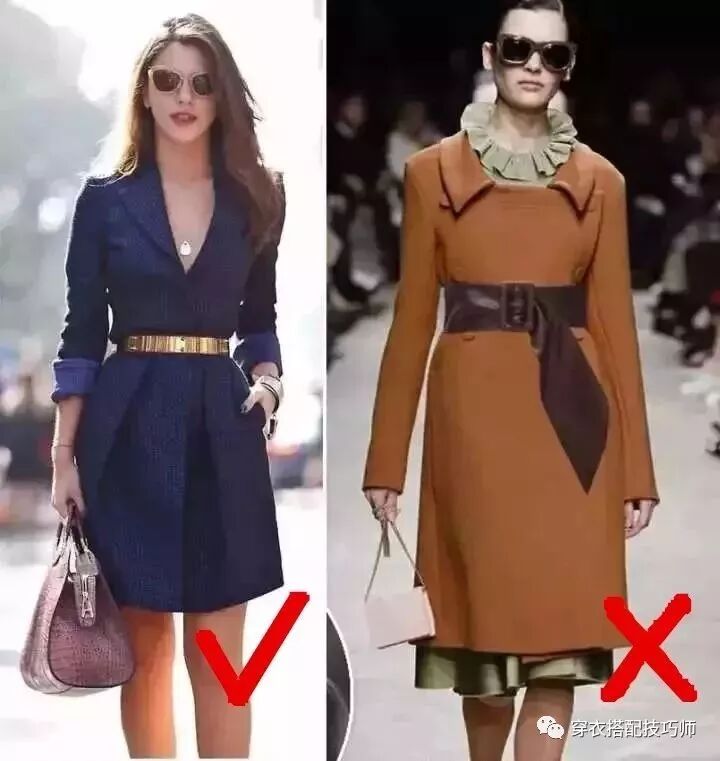 如果你穿着X型不好看,那么可能是因为你的腰部不够细,这时配一条腰带会更好。(细腰带会比粗腰带显瘦!)