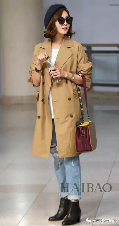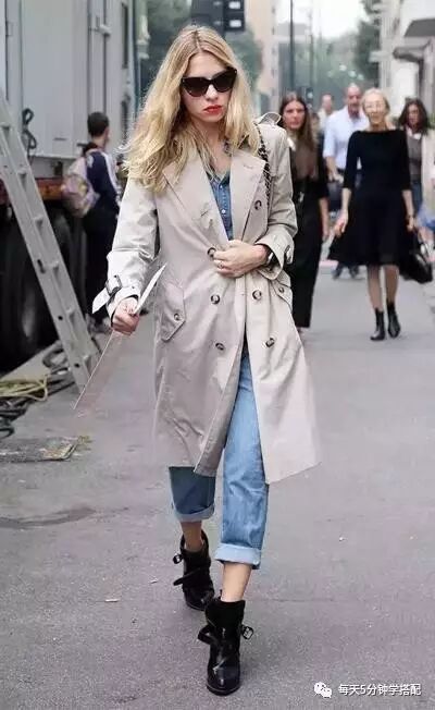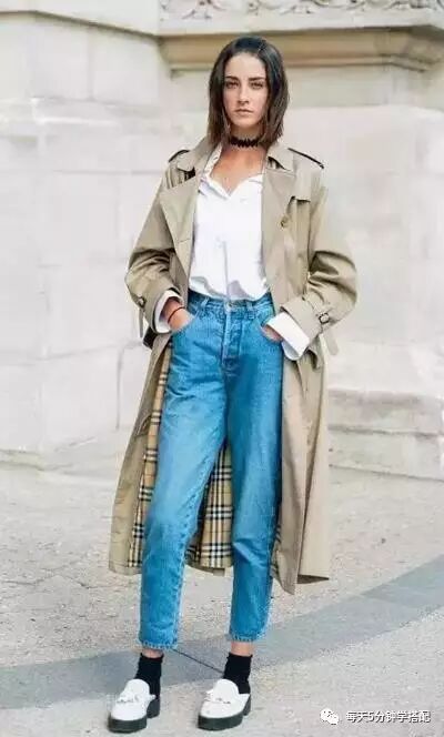 【风衣+高腰牛仔】