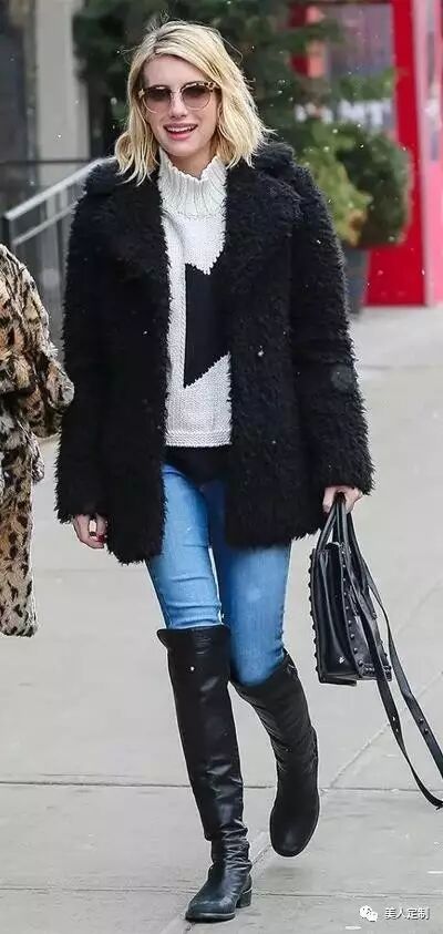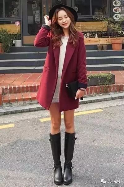 现在看这张照片X型大衣搭配长筒靴,看起来真的挺高的呢~