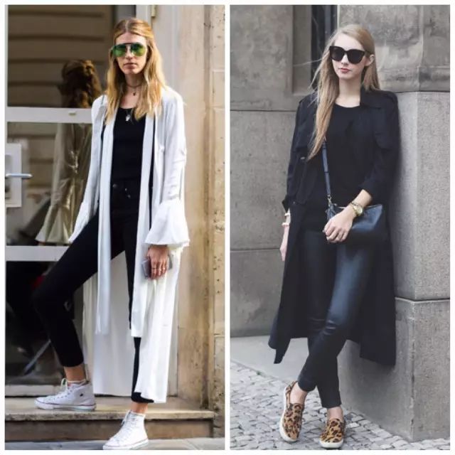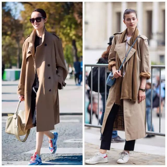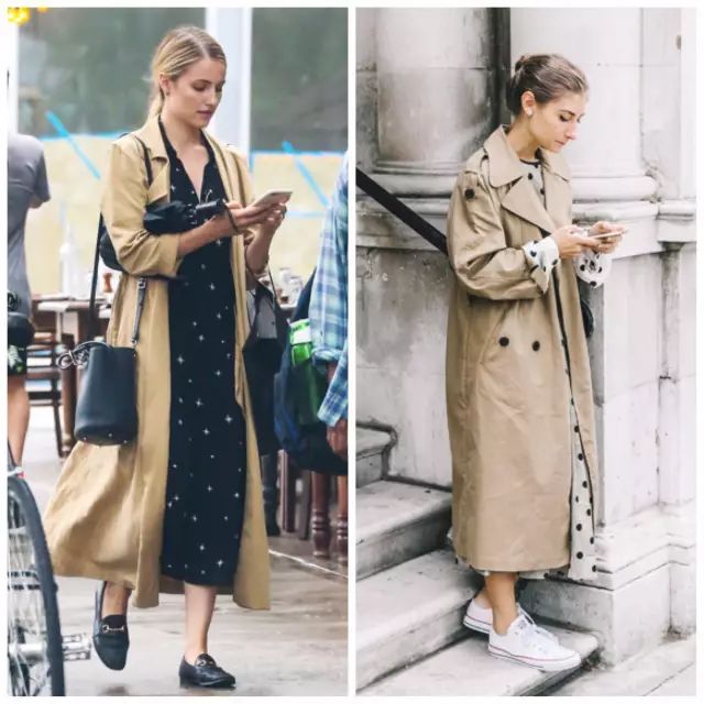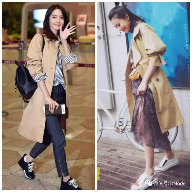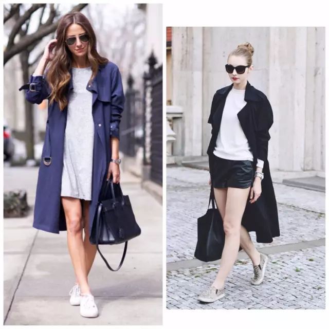 而如果觉得经典色长风衣的气质过于成熟,那么混搭休闲风格的平底鞋,就能让你的造型活泼减龄,时髦翻倍。