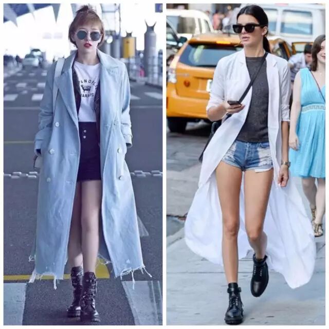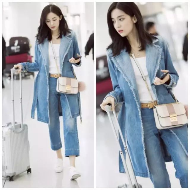 当然,牛仔长外套的衣长同样需要你根据自己的身材来衡量。如果你是身材比较娇小的小仙女,像娜扎这种到膝盖的中长款会更适合你。