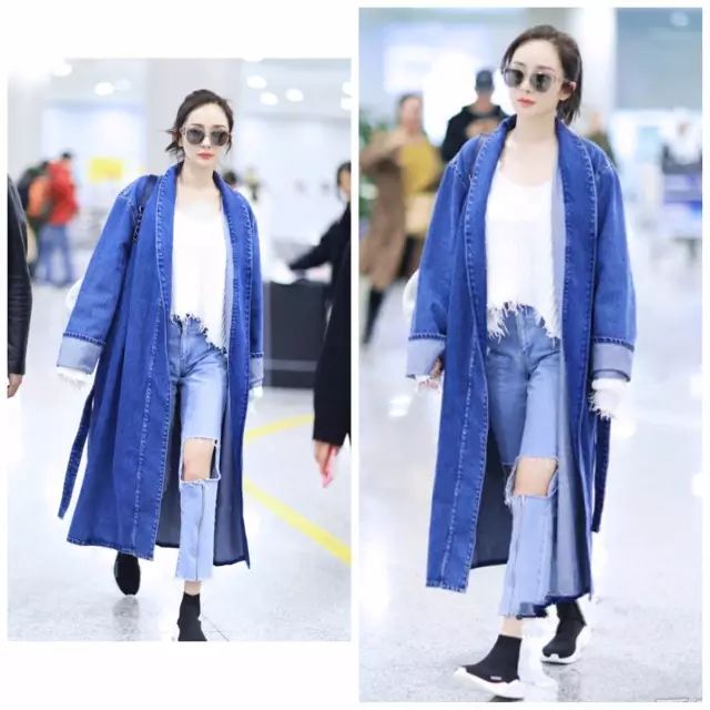 牛仔外套也是我们衣橱常备的经典款外套了,不过带货女王杨幂告诉我们,今年流行的牛仔外套,可一定要够长才好看,最好是“走路能带风”的那种,大写的霸气又时尚!